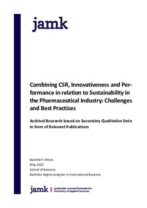Combining CSR, Innovativeness and Per- formance in relation to Sustainability in the Pharmaceutical Industry: Challenges and Best Practices