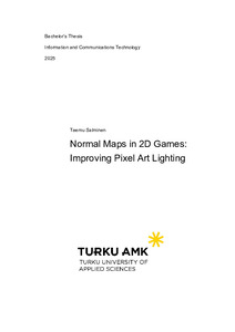 Pikseligrafiikan ja retrotyylisten pelien suosion kasvaessa indiepelikehittäjät etsivät uusia ratkaisuja erottuakseen massoista. Normaalikartoitus tarjoaa yhden keinon erottua muista peleistä. Tässä opinnäytetyössä pyrittiin selvittämään eron visuaalisessa laadussa itse piirrettyjen ja algoritmillisesti tuotettujen pikseligrafiikkan suunnattujen normaalikarttojen välillä.Työssä verratiin eroja molempien tapojen välillä ja tarkasteltiin suosituimpia työkaluja normaalikarttojen luontiin joko käsin tai ohjelman tuottamana.