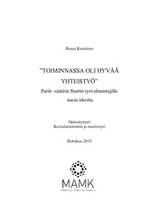 Opinnäytetyössä on tarkoituksena tuoda Parik-säätiön Starttiin yksilö- ja työvalmentajalle uusia ideoita nuorten kanssa työskentelyyn niin yksilön kuin ryhmän kanssa toimiessa. Tuotoksena valmistui menetelmäkansio, jossa on sosiaaliseen vuorovaikutukseen liittyviä harjoituksia. Harjoitusten avulla vahvistetaan nuorten itsetuntoa, luottamusta, yhteistyö- ja ongelmanratkaisutaitoa.