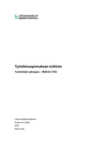 Toiminnallisen opinnäytetyön tavoitteena oli luoda yleiskielinen ja helposti ymmärrettävissä oleva pikaopas ajalla 1.4.2025–31.3.2028 voimassa olevasta matkailu-, ravintola- ja vapaa-ajan palveluita koskevasta työntekijöiden työehtosopimuksesta.