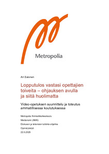 Lopputulos vastasi opettajien toiveita – ohjauksen avulla ja siitä huolimatta : video-opetuksen suunnittelu ja toteutus ammatillisessa koulutuksessa