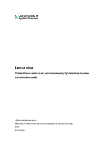 Tässä opinnäytetyössä tarkasteltiin yhteisöllisen resilienssin rakentumista työyhteisöissä luovien ja taidelähtöisten menetelmien avulla. Kehittämistehtävän teoreettinen viitekehys rakentui luovuuden, luovien menetelmien, muotoiluajattelun ja asiakaslähtöisyyden ympärille. Tutkimusote oli laadullinen ja aineistoa kerättiin vertailuanalysilla, haastatteluilla, havainnoinnilla sekä työpajamenetelmin.