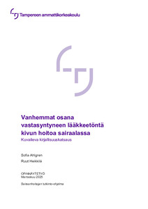 Opinnäytetyönä teimme kuvailevan kirjallisuuskatsauksen vastasyntyneen vanhempien osallistumisesta lääkkeettömään kivunhoitoon sairaalassa. Opinnäytetyön tavoitteena oli tarjota tietoa vanhempien osallistumisesta vastasyntyneen lääkkeettömään kivunhoitoon sairaalassa. Tutkimuskysymyksenä oli: Miten vanhemmat voivat osallistua vastasyntyneen lääkkeettömään kivunhoitoon sairaalassa?