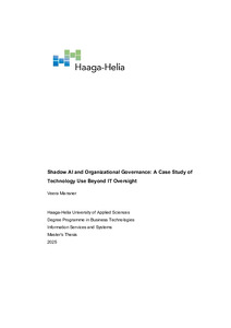 Survey results showed that shadow AI tools are widely used in the case organization and that people use shadow AI tools mostly because it gives the best answers. Interviews reviewed that the organization does have an AI governance, and it is mostly driven by the EU AI Act. The interviewed experts did not agree on whether unofficial generative AI tools should be blocked or not, and that is something they should align. Generatiivisten tekoälytyökalujen käyttö ilman IT osaston virallista hyväksyntää on lisääntynyt työpaikoilla. Tällaista luvatonta käyttöä kutsutaan varjotekoälyksi. Tämän opinnäytetyön tarkoituksena oli selvittää, kuinka toimeksiantajayrityksessä käytetään varjotekoälyä. Lisäksi tutkittiin, miksi varjotekoäly työkaluja käytetään ja millaisia strategioita yritys voi käyttää ilmiön hallitsemiseksi.