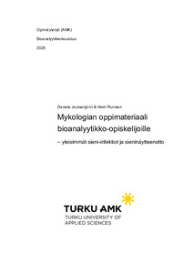 Tämän opinnäytetyön tarkoituksena on laatia mykologian oppimateriaali bioanalyytikko-opiskelijoille. Opinnäytetyön tuotoksena syntyneet kirjalliset materiaalit sekä opetusvideo sieninäytteenotosta julkaistaan Turun ammattikorkeakoulun käytössä olevalle Itslearning-oppimisalustalle. Oppimateriaali sisältää myös osaamista mittaavan lopputestin.