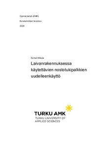 Opinnäytetyön tavoitteena oli selvittää laivanrakennuksessa käytettävien nostotukipalkkien uudelleenkäytön mahdollisuuksia kierrätyksen sijaan. Aihe on merkittävä ympäristönäkökulmasta, sillä teräksen valmistus on energiavaltaista ja hiilidioksidipäästöjä tuottavaa. Uudelleenkäyttö sellaisenaan voisi vähentää päästöjä ja edistää kiertotalouden toteutumista, koska kiertotalouden periaatteiden mukaan uudelleenkäyttö on hierarkkisesti korkeammalla kuin materiaalin kierrätys. Työ toteutettiin osana Meyer Turku Oy:n NEcOLEAP-kehitysohjelmaa, minkä tavoitteena on edistää telakan ilmastoneutraaliutta.