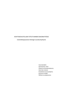 Kylmälahti, Virpi. Kehityskeskustelujen toteutuminen diakoniatyössä. Esimerkkitapauksena Helsingin seurakuntayhtymä. Diak. Helsinki, kevät 2015, 68 s., 3 liitettä. Diakonia -ammattikorkeakoulu, Sosiaalialan koulutusohjelma, Päihteet ja syrjäytyminen suuntautumisvaihtoehto, sosionomi (YAMK).