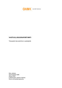 Opinnäytetyön tarkoituksena oli laatia opiskelumateriaali Oulun ammattikorkeakoulun taloushallinnon opiskelijoille. Opiskelumateriaalille oli tarve, jotta opiskelijat voivat itsenäisesti perehtyä yritysten vastuullisuusraportointiin ja sen keskeisiin periaatteisiin. Tavoitteena oli tuottaa helppolukuinen ja tiivis kokonaisuus, joka tukee opiskelijoiden yleisymmärrystä aiheesta.