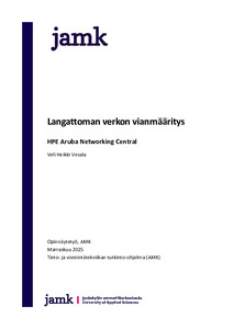 Tutkimustyön tavoitteena oli saada käsitystä siitä, millaisia tavanomaisia langattoman verkon ongelmia yri-tysympäristössä voi olla ja miten vianmääritystä voidaan tehdä yleisimmissä WLAN-verkon vikatilanteissa hyödyntämällä Aruba Centralia. Lisäksi tutkittiin, löytyisikö jotakin yhtenäistä prosessia, jota voisi käyttää tavanomaisten WLAN-verkon vikatilanteiden vianmäärityksessä.