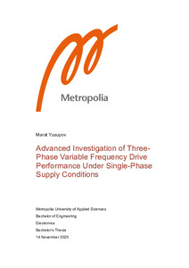 Thesis concludes that single-phase operation of three-phase VFDs is technically feasible but requires derating, improved thermal management, and adherence to harmonic limits prescribed by IEC 61800-3 and IEEE 519. The findings provide practical guidelines for engineers and system integrators, offering an empirically supported framework for safe and efficient adaptation of three-phase VFDs in single-phase environments.
