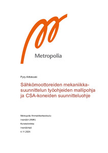 Sähkömoottoreiden mekaniikkasuunnittelun työohjeiden mallipohja ja CSA-koneiden suunnitteluohje