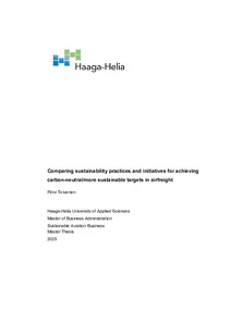 Results show, that while carriers report engagement in all ESG sectors, environmental, social and governance, they are at different stage of involvement. Prioritizing Sustainable Aviation Fuel investments, focusing on innovations and strong reporting framework tend to lead to better environmental results along investing in modern fleet. Key challenges of the industry include limited SAF availability, high cost of SAF, partially overlapping and ever evolving standards and lack of global standardization. Industry needs to accelerate standardization and scalable clean energy solutions to reach net zero targets by 2050.