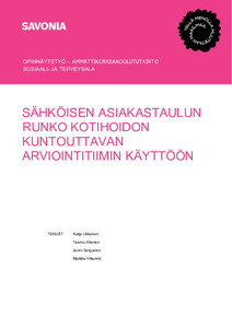 Opinnäytetyön tavoitteena oli kehittää Pohjois-Savon hyvinvointialueen kotihoidon kuntouttavan arviointijakson (ARVI) käyttöön sähköinen asiakastaulu, jonka tarkoituksena on sujuvoittaa hoitotyötä, parantaa asiakasturvallisuutta ja vahvistaa tietosuojaa. Kehittämistyö perustui olemassa olevaan ARVI-toimintamalliin sekä hoitotyön ammattilaisten käytännön tarpeisiin. Asiakastaulun runko suunniteltiin ja toteutettiin Excel-ohjelmistolla, ja sen toimivuutta ja käytettävyyttä arvioitiin Webropol-kyselyllä, johon vastasi kuusi kuntouttavassa arviointiyksikössä työskentelevää ammattilaista.