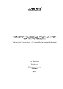 Tämän opinnäytetyön aiheena on työnantajan lisätyön tarjoamisvelvollisuus osa-aikaisille työntekijöille työsopimuslain (2001/55) 2 luvun 5 §:n perusteella. Tavoitteena oli selvittää, miten velvollisuus toteutuu käytännössä ja millaisia menettelytapoja pidetään tasapuolisina. Tutkimuskysymykset koskivat lisätyön tarjoamisen tapoja ja läpinäkyvyyttä, tasapuolisuutta osa-aikaisten kesken sekä perehdytyksen ja osaamisvaatimusten merkitystä.