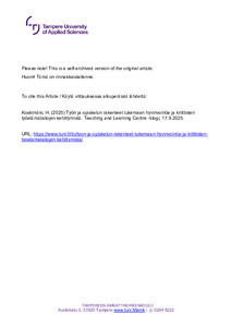 Työn ja opiskelun rakenteet tukemaan hyvinvointia ja kriittisten työelämätaitojen kehittymistä