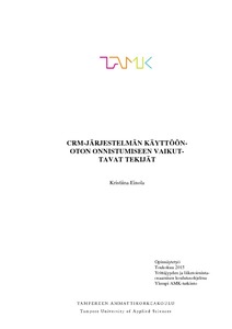 Viime vuosina moni yritys on investoinut CRM-järjestelmään, mutta vain harvassa organisaatiossa on onnistunut uuden järjestelmän käyttöönotto ja uuteen järjestelmään liittyvien toimintatapojen muuttaminen. Tässä kehittämistyössä tarkasteltiin CRM-järjestelmän käyttöönottoprojektin onnistumiseen vaikuttavia tekijöitä. Työn tavoitteena oli selvittää, mitä asioita käyttöönottoprojektia suunniteltaessa tulisi huomioida, jotta käyttöönottoprojekti onnistuisi. Työn tarkoituksena oli kerätä ja tehdä näkyväksi CRM-käyttöönottoprojekteissa haasteellisiksi koettuja asioita, jotta kohdeyritys pystyy suunnittelemaan ja toteuttamaan CRM-järjestelmän käyttöönoton onnistuneesti.