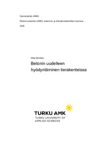 Tämä opinnäytetyö käsittelee betonijätteiden uudelleenkäyttöä rakentamisessa. Työ keskittyy Kaarinan kaupungissa sijaitsevan Lakarin maankaatopaikalta kerätyn betonijätteen uudelleen hyödyntämiseen alueen tierakenteissa. Työssä selvitetään, kuinka kierrätetty betonijäte voi toimia luonnon kiviaineksia säästävänä ja kiertotaloutta edistävänä ratkaisuna. Tavoitteena on laatia alueelle käyttökelpoinen hyödyntämissuunnitelma, sekä arvioida materiaalin soveltuvuus, tekniset ominaisuudet ja ympäristövaikutukset.