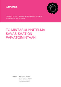 Toimintasuunnitelma Savas-Säätiön päivätoimintaan