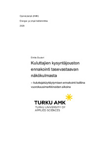 Tuloksista voidaan päätellä, että kulutusjouston merkitys kasvaa kulutusennusteiden laadinnassa. Erityisesti kehitettävää on kulutusjouston mallintamisessa tilanteissa, jossa spot-hinta nousee erityisen korkealle tai matalalle. Tällä hetkellä ennakointiin käytetään ohjelmistoja, jotka perustuvat tilastollisiin ja koneoppimisen malleihin. Ratkaisuja tasevastaavan kustannusriskien pienentämiseen ja ennakointitarkkuuden parantamiseen esitetään ennustusohjelmien kehittymistä, kulutusjouston yleistymistä, reaaliaikaisen mittausdatan saatavuuden parantamista, tasepoikkeamahinnoittelun muutosta ja uudenlaisia sähkösopimustyyppejä. The work of balance responsible parties has changed in recent years due to the energy transition, as well as changes in consumer behavior and in the electricity market. The goal of a balance responsible party is to keep the balance within their responsibility area, and this process includes preparing consumption forecasts. The purpose of this thesis was to review the forecasting of demand response and to identify solutions for improving forecasting as well as reducing the cost risk faced by balance responsible parties.