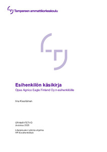 Tämä opinnäytetyö on toiminnallinen opinnäytetyö, jonka lopputuloksena syntyy esihenkilön käsikirja Agnico Eagle Finland Oy:n esihenkilöille. Käsikirjan on tarkoitus toimia erityisesti oppaana uudelle esihenkilölle, mutta se tulee olemaan myös paikka, josta kokeneempi esihenkilö voi etsiä tarvitsemaansa tietoa organisaation käytännöistä. Käsikirjan tarkoituksena on auttaa ja tukea esihenkilöitä suoriutumaan ja menestymään tehtävässään.