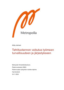 Opinnäytetyössä tarkasteltiin, miten tahtituotanto vaikuttaa rakennustyömaan turvallisuuteen ja järjestyksen hallintaan verrattuna perinteiseen tuotantotapaan. Tavoitteena oli selvittää, voiko selkeästi rytmitetty ja ennakoiva tuotantomalli vähentää tapaturmariskejä, parantaa työmaan järjestelmällisyyttä ja tukea sujuvaa työskentelyä. Tutkimus toteutettiin kirjallisuuskatsauksena ja aineistona käytettiin alan tutkimuksia, ohjeistuksia sekä tapaturmavakuutuskeskuksen ja työsuojeluhallinnon tilastoja.