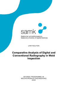 This thesis presents the differences between digital radiography (DR) and conventional film radiography in industrial weld inspection. Data was collected from various existing sources, such as research, standards, and technical literature. The study compares image quality parameters, such as signal-to-noise ratio (SNR), contrast-to-noise ratio (CNR), spatial resolution, dynamic range, and exposure latitude.