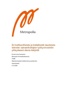 Eri kulttuurillisista ja kielellisistä taustoista tulevien sairaanhoitajien työhyvinvointiin yhteydessä olevia tekijöitä
