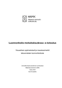 Talousmetsissä toteutettavan luonnonhoidon ja metsäasiantuntijoiden luonnonhoidon osaamisen kehittämiseen kohdistuu paljon vaatimuksia. Talousmetsien luonnonhoito on olennainen osa kokonaiskestävää metsätaloutta. Sen tarkoitus on turvata Suomen metsäluonnon monimuotoisuutta ja edellytykset metsistä saataville ekosysteemipalveluille nyt ja tulevaisuudessa. Tämän opinnäytetyön tavoitteina oli selvittää luonnonhoidon osaamisen kehittämiseen liittyviä tarpeita ja saavutettavuuden huomiointiin liittyviä keinoja kehittämistyönä tuotettavan visuaalisen oppimateriaalin tueksi. Opinnäytetyön toimeksiantajana toimi Hämeen ammattikorkeakoulun (HAMK) metsätalouden koulutusohjelma. Talousmetsien luonnonhoidon keinoja ja periaatteita käsittelevän oppimateriaalin tavoitteena on edistää tulevien metsäasiantuntijoiden luonnonhoidon osaamista.
