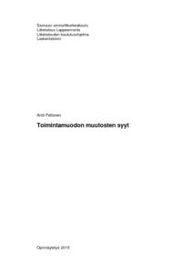 Opinnäytetyön tavoitteena oli tutkia syitä, joiden vuoksi yritykset muuttavat toimintamuotoaan. Pyrkimyksenä oli selvittää, millaisia erilaisia syitä ja vaikuttimia yrittäjillä on toimintamuodon muutoksen toteuttamiseen.