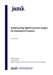 Työssä todettiin, että käyttötarkoitusta varten luodut levykuvat mahdollistivat harjoituksen pysyvän samaan aikaan todenmukaisena, eettisesti hyväksyttävänä ja teknisesti riittävän haastavana. Toteutuksessa käytettyjen prosessien ja menetelmien todettiin olevan toistettavissa ja soveltuvan muiden oppilaitosten hyödynnettäväksi forensiikan opetusmateriaalien tuottamisessa. Skenaariopohjainen lähestymistapa aineiston tuottamiseksi todettiin toimivaksi malliksi ja tarjoavan kustannustehokkaan tavan tuottaa AMK-tasoista opetusmateriaalia. Digital forensics education at Jamk University of Applied Sciences was found to require realistic and ethically sound forensic disk images that supported practical learning at UAS EQF-6 level. The work was commissioned to produce custom disk images that aligned with the learning objectives of Jamk’s digital forensics course and to determine which tools and methods are suitable for educational use. The objective was to produce images and supporting documentation which operated within the ethical and legal constraints of digital forensic education.