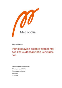 Opinnäytetyö käsittelee pinnoitettavien betonilattiarakenteiden kosteudenhallinnan kehittämistä. Työn tavoitteena oli selvittää, miten pinnoitettavien betonilattioiden kosteudenhallintaa voitaisiin edistää työmailla ja miten se tulisi huomioida jo suunnitteluvaiheessa. Työssä tarkasteltiin betonilattioiden sisältämän kosteuden vaikutuksia, mahdollisten laatuvaurioiden syntyä, rakennusaikaisia kuivatus- ja lämmitysratkaisuja sekä pinnoitettavuuden edellytyksiä. Työn toimeksiantajana toimi SRV Rakennus Oy.