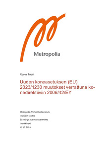 Insinöörityön aiheena oli perehtyä Euroopan parlamentin ja neuvoston julkaisemaan uuteen koneasetukseen 2023/1230 ja verrata sitä vanhaan konedirektiiviin 2006/42/EY. Tarkoituksena oli tutustua vanhaan direktiiviin ja selvittää uuden asetuksen tuomat muutokset koneiden suunnitteluun ja valmistukseen sekä toimijoiden velvollisuuksiin. Koneasetus astuu voimaan 20.1.2027, jolloin se korvaa vanhan direktiivin.