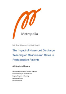 This literature review was executed as a final thesis for the Degree Program in Nursing at Metropolia University of Applied Sciences, Helsinki. Results from the data analysis revealed several nurse-led discharge teaching methods, including follow-up-based, technological, multi-modal, structured, and individualized. The influence of these was demonstrated as reduced or increased readmissions, other positive effects, other negative effects, or no effect. The results indicate that nurse-led discharge education has the potential to reduce readmissions and improve post-operative patient outcomes. The effects of nurse-led discharge teaching varied according to the method; however, the majority led to a reduction in readmissions as well as other positive effects such as enhanced patient readiness, improved communication, and enhanced continuity of care. Although a few interventions showed no significant impact and one resulted in increased readmissions under specific conditions, results suggest that the types of nurse-led discharge education applied in the studies can be considered a valuable tool for supporting patients in the early post-discharge period.