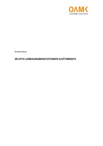 Työn tavoite on kehittää toimeksiantajalle toimiva, ajanmukainen ohjeistus, ensisijaisesti luomukananmunatuotannon aloittamiseen, vertaillen myös ulkokanalatuotannon mahdollisuuksia. Työssä selvitetään tuotannon aloituksen viranomaisprosessia, tuotantoedellytyksiä ja lainsäädäntöä sekä vanhan kotitarvekanalan soveltuvuus luomutuotantoon ja tarvittavat muutokset. Teoriaosuudessa kerrotaan vaatimuksista yleisesti, huomioon ottaen tarkastelun kohteen rajoitukset ja suunnitellut tuotantoehdot sekä sijainti.