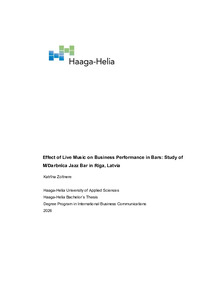 Effect of Live Music on Business Performance in Bars: Study of M/Darbnīca Jazz Bar in Riga, Latvia