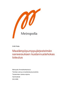 Opinnäytetyön aiheena tutkittiin maalämpöpumppujärjestelmän saneerauksen kustannustehokasta toteutusta. Opinnäytetyössä kerättiin saneeraustoimintaa koskevaa ohjeistusta ja lainsäädäntöä, jonka pohjalta laadittiin lämpöpumppusaneerauksen työohje opinnäytetyön tilaajan käyttöön. Tärkeänä osana tutkimusta tutustuttiin EU:n F-kaasuasetuksen vaatimuksiin ja niiden vaikutuksiin lämpöpumppujen saneeraustoiminnassa.