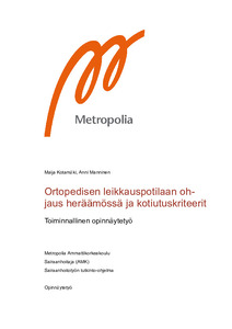 Tämän toiminnallisen opinnäytetyön tarkoituksena oli tarkastella ortopedisen leikkauspotilaan matkaa leikkaussalista heräämöön, potilasohjausta heräämössä ja potilaan kotiutuskriteerejä. Opinnäytetyön tavoitteena oli selkeyttää heräämövaiheessa tapahtuvaa potilasohjausta ja korostaa sen merkitystä potilaan toipumisessa, potilasturvallisuudessa ja onnistuneessa kotiutumisessa. Yhtenä tavoitteista oli tukea sairaanhoitajaopiskelijoiden osaamista perioperatiivisessa hoitotyössä tuottamalla käytännönläheinen ja helposti hyödynnettävä opetusmateriaali.