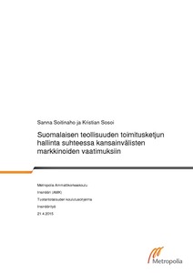 Suomalaisen teollisuuden toimitusketjun hallinta suhteessa kansainvälisten markkinoiden vaatimuksiin