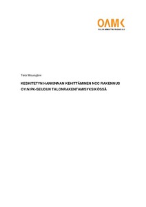 Opinnäytetyön tutkimuksen tavoitteena oli kehittää keskitetyn hankinnan toimintamallia NCC Rakennus Oy:n talonrakentamisyksikössä. Työssä pyrittiin selventämään sekä kehittämään hankinnan ja tuotannon yhteistoimintaa, jotta eri osapuolille saatiin yhteinen, selkeä käsitys hankinnan toiminnasta.