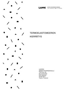 Työn tarkoituksena on tutkia miten kierrätys, uudelleenprosessointi, UV-vanhennus ja materiaalin termodynaaminen kuivaus vaikuttavat termoelastomeerin ominaisuuksiin. Työ kuuluu osana projektiin ”Uusiomuovin vaikutukset valmistusprosessiin, tuotteidenominaisuuksiin ja käyttöön”.