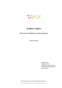 Opinnäytetyössäni tutkin koiran roolia fiktiivisessä kerronnassa. Käytän lähteenä käsikirjoitusta koskevaa kirjallisuutta ja tämän pohjalta tutkin päähenkilön ja yleisimpien arkkityyppien ominaisuuksia sekä näiden suhdetta fiktiiviseen kerrontaan. Näiden tietojen, sekä koiria käsittelevän aineiston avulla, tutkin koiran roolia näissä hahmoissa. Pohdin miten koira esitetään ja millaisissa rooleissa se mahdollisesti toimii ja millaisissa ei.