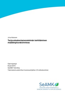 Opinnäytetyön aiheena on tarjouslaskentamenetelmän kehittäminen maalämpöurakoissa sekä vesi-ilmalämpöpumppu-urakoissa. Opinnäytetyössä tutkitaan lämpöpumppu-urakoinnissa syntyviä kustannuksia, jotka täytyy ottaa huomioon tarjouslaskentavaiheessa. Työssä huomioidaan omakotitalojen maalämpöprosessiin ja vesi-ilmalämpöpumpun asennusprosessiin vaikuttavat tekijät uudiskohteissa ja saneerauskohteissa sekä mitkä tekijät aiheuttavat yritykselle kustannuksia. Työssä käydään läpi myös isojen kiinteistökohteiden kustannustekijät.