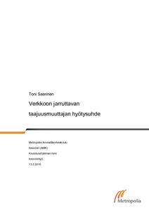 Tämä insinöörityö tehtiin Metropolia Ammattikorkeakoululle. Työssä tutkittiin verkkoon jar-ruttavan taajuusmuuttajan hyötysuhdetta erilaisilla kuormituksilla ja generaattorin pyöri-misnopeuksilla. Mittaukset suoritettiin Metropolian sähkönkäytön laboratoriotiloissa, jossa perehdyttiin mittausten soveltuvuutta tuleville opiskelijoille. Tavoitteena oli tehdä mittauk-sista uusi laboratorioryhmätyö opiskelijoille ja antaa opettajille uusia ajatuksia uuden työn aikaansaamiseksi. Työssä pohdittiin oikeanlaista mittauskytkentää mittaustulosten aikaan-saamiseksi ja analysoitiin saadut tulokset.