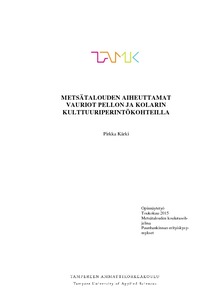 Opinnäytetyössä kartoitettiin vuosien 2011 ja 2014 aikana tehdyn kulttuuriperintökohteiden inventoinnin pohjalta, mitä metsätalouden aiheuttamia vaurioita kulttuuriperintökohteilta löytyi. Työhön on koottu tietoa myös muista raportoiduista vaurioista kohteilla. Työn lopussa on esitetty ohjeet millä tavoin kulttuuriperintökohteet on otettava huomioon metsien käsittelyssä, jotta ne säilyisivät tulevaisuudessa.