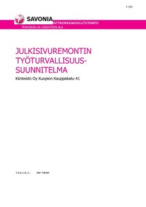 Tämän opinnäytetyön tavoitteena oli tehdä kattava työturvallisuussuunnitelma kesällä 2014 alkaneelle Kiinteistö Oy Kuopion Kauppakatu 41 julkisivusaneeraukselle. Julkisivusaneerauksen pääurakoitsijana toimii Rakennustyö Salminen Oy. Työturvallisuussuunnitelman teko on osa viimeistä mestariharjoittelua.