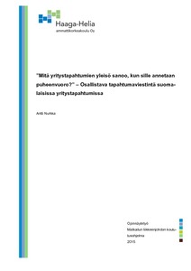 ”Mitä yritystapahtumien yleisö sanoo, kun sille annetaan puheenvuoro?” – Osallistava tapahtumaviestintä suomalaisissa yritystapahtumissa