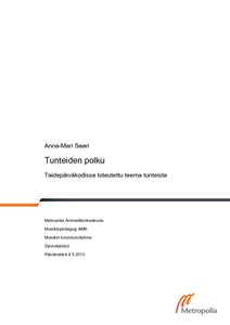 Toiminnallisen opinnäytetyöni tavoitteena on taideaineiden avulla toteuttaa teemaa tunteista. Tämä ”Tunteiden poluksi” nimetyn teeman toteutuksen tarkoituksena olisi tukea ja herättää lasten tietoisuutta ja ymmärrystä omista tunteista. Erilaisten tunnetilojen tarkasteleminen taideaineiden avulla voisi antaa lapsille mahdollisimman laajan näkökulman siitä miten eritavoin tunteita voi ilmaista ja tukea myös lapsen minäkuvan muodostumista. Tunteiden tarkasteleminen ryhmäopetuksen keinoin antaa lapselle mahdollisuuden käsitellä tunneilmaisuaan vuorovaikutuksessa yhdessä muiden kanssa. Teemaa toteutettiin musiikin, kuvallisen ilmaisun, sadutuksen ja draaman keinoin ja niitä yhdessä integroiden.