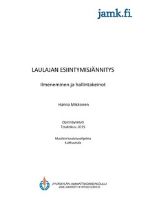 Opinnäytetyön tavoitteena oli tutkia laulajien jännitysoireiden ilmenemistä ja tuoda ilmi kyseisen kohderyhmän käyttämiä hallintakeinoja. Käytin tutkimuksen tiedonkeruutapana kyselyä. Kyselyn otanta rajoittui pop/jazz -laulajiin, klassisiin laulajiin, teatterin alalla ammatikseen työskenteleviin laulajiin ja laulun opiskelijoihin. Lisäksi tutkin kirjallisuuden avulla yleisiä jännitysoireita ja jännityksen hallintakeinoja, koska ne liittyvät olennaisesti myös laulamiseen.