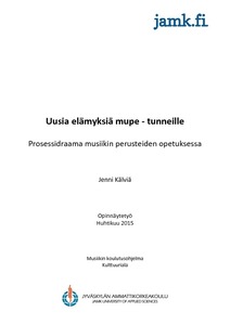 Opinnäytetyöni tarkoituksena oli selvittää, kuinka prosessidraamaa voi hyödyntää musiikin perusteiden perustason opetuksessa ja mitä hyötyjä prosessidraama voi tuoda mupe - opetukseen. Tutkin prosessidraaman käyttöä erityisesti musiikin historian ja tyylikausien opettamissa. Opinnäytetyötä varten kirjoitin kaksi erilaista prosessidraamaa ja testasin niistä toista 2/3 - tason mupe - tunneilla. Aineistonkeruumenetelmänä käytin osallistuvaa havainnointia sekä kyselylomaketta, johon vastasivat testattuun prosessidraamaan osallistuneet oppilaat sekä heidän mupe- opettajansa. Analysoin tutkimusaineistoni käyttämällä sisällönanalyysiä.