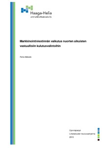 Kuluttajan ostokäyttäytyminen muodostuu monen eri tekijän pohjalta. Kuluttajan henkilökohtaisia ominaisuuksia ovat hänen demografiset, psykologiset ja sosiaaliset tekijänsä, jotka muovaavat hänen elämäntyyliään. Tämän lisäksi erilaiset ulkoiset ärsykkeet tuovat mukaan oman vaikutuksensa. Niistä yksi voimakkaimmista on markkinointiviestintä. Markkinointiviestinnällä luodaan, ylläpidetään ja vahvistetaan asiakassuhteita sekä vaikutetaan tuotteiden ja palveluiden tunnettuuteen, haluttavuuteen ja myyntiin. Tämän opinnäytetyön tarkoitus on selvittää miten markkinointiviestintä vaikuttaa nuorten aikuisten vastuullisiin kulutusvalintoihin.